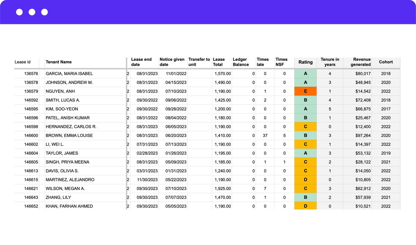 LeaseLift's advanced analytics platform can help you cluster tenants into segments based on characteristics such as payment consistency and lease renewal history. This segmentation helps in understanding which types of tenants are more likely to stay longer and provide higher lifetime value.